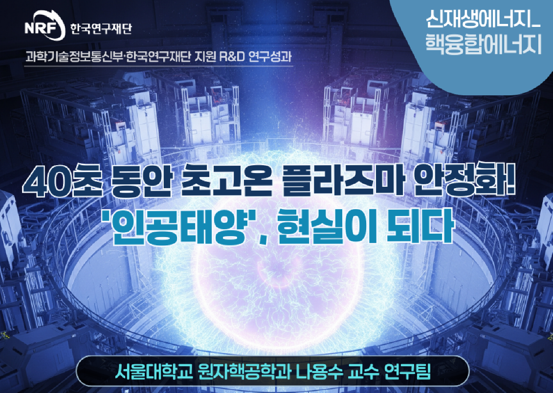 ■ 기술개요: • 본 기술은 고에너지 입자를 적극적으로 활용하여 핵융합 플라즈마의 안정성을 획기적으로 향상시키고, 1억 도 이상의 초고온 상태를 장시간 안정적으로 유지할 수 있도록 하는 핵심 기술입니다.특히, FIRE(Fast Ion Regulated Enhancement) 모드라는 새로운 핵융합 운전 방식을 통해 고에너지 입자가 플라즈마 내 난류를 억제하고 안정화시키는 메커니즘을 규명하였으며, 이를 통해 핵융합 성능을 크게 향상시킬 수 있는 새로운 가능성을 제시합니다.본 기술은 KSTAR와 같은 토카막 장치에서 1억 도 이상의 초고온 플라즈마를 40초 이상 안정적으로 유지하는 데 세계 최초로 성공하였으며, 향후 핵융합 실증로 및 상용로에서의 장시간 운전을 가능하게 하는 핵심 기반 기술로 평가되고 있습니다.기술의■ 기술적 차별성 및 효과: • FIRE 모드는 기존 운전 방식과 달리, 플라즈마의 경계면 불안정성을 안정화시켜 핵융합 장치 내벽에 미치는 손상을 최소화하고, 장시간 안정적인 플라즈마 운전을 가능하게 함.• 고에너지 입자가 플라즈마 난류를 안정화하여 에너지 손실을 감소시키고 핵융합 반응 효율을 향상시킴.• 자발 전류가 새로운 형태로 플라즈마 내부에 발생, 핵융합 실험로에서의 장시간 안정적 운전이 가능해짐.• 고에너지 전자 발생 기작을 규명하여 안전성을 확보하고, 폭주 전자 발생의 위험을 최소화하는 근본적 해결책을 제시.■ 개발• 서울대학교 원자핵공학과 나용수 교수 연구팀■ 추가적인 상세정보는 '파일 다운로드' 선택하면 '기술요약서' 를 확인할 수 있습니다.■ 카드뉴스