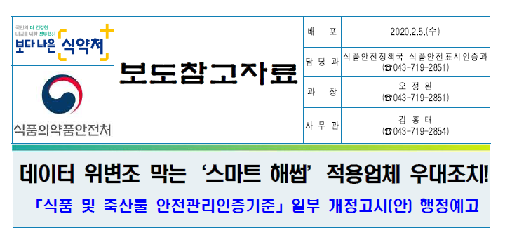 [보도참고] 데이터 위변조 막는 '스마트 해썹' 적용업체 우대조치!