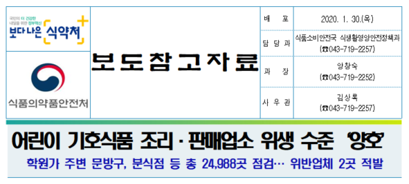 [보도참고] 어린이 기호식품 조리.판매업소 위생 수준 '양호'