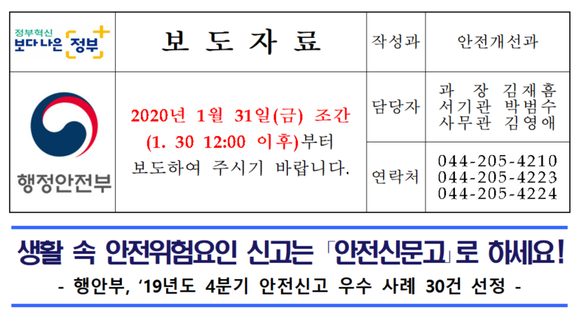 생활 속 안전위험요인 신고는 「안전신문고」로 하세요!
