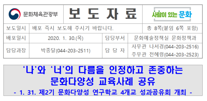 ‘나’와 ‘너’의 다름을 인정하고 존중하는 문화다양성 교육사례 공유