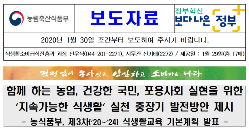 함께 하는 농업, 건강한 국민, 포용사회 실현을 위한 ‘지속가능한 식생활‘ 실...