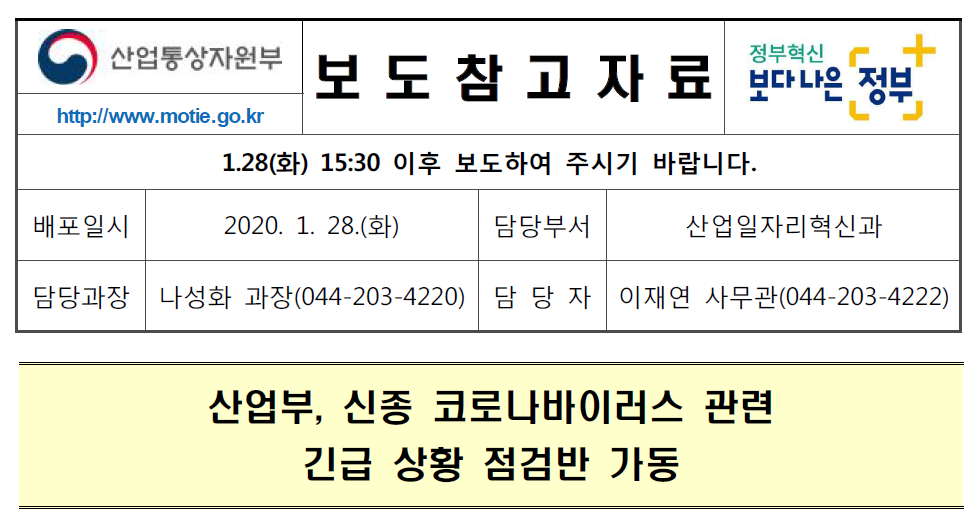 (참고자료) 산업부, 신종 코로나바이러스 긴급 상황점검
