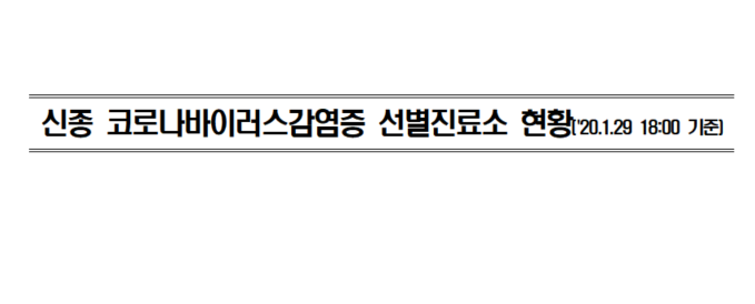 신종 코로나바이러스 선별진료소 현황(2020.1.29.18:00 기준)