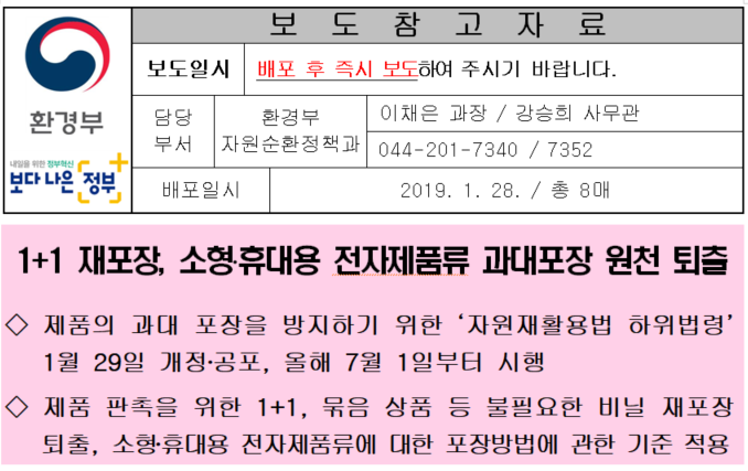 (참고)1+1 재포장, 소형·휴대용 전자제품류 과대포장 원천 퇴출