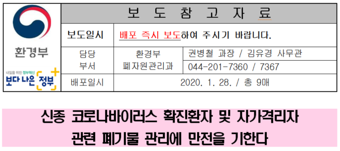 (참고)신종 코로나바이러스 확진환자 및 자가격리자 관련 폐기물 관리에 만전을 ...