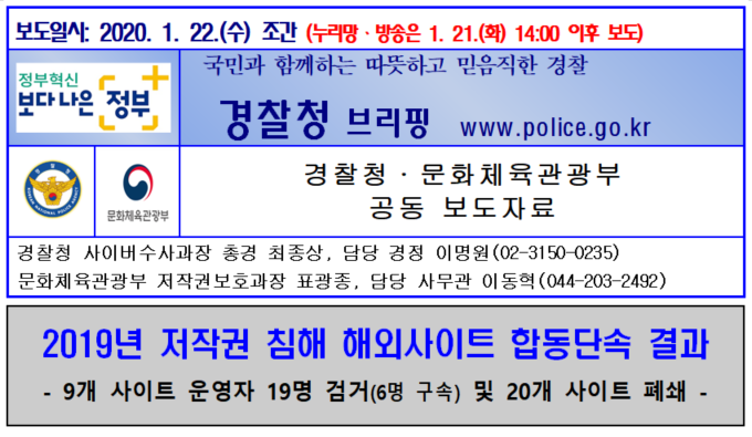 2019년 저작권 침해 해외사이트 합동단속 결과