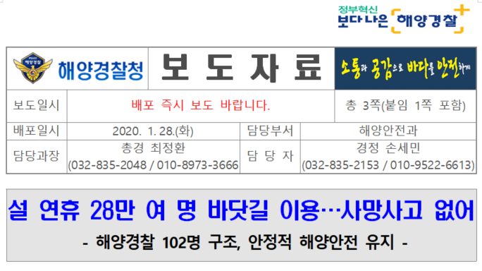 설 연휴 28만 여 명 바닷길 이용…사망사고 없어