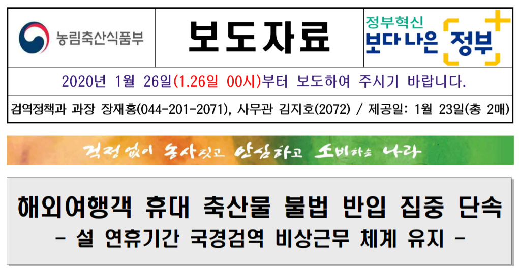 해외여행객 휴대 축산물 불법 반입 집중 단속