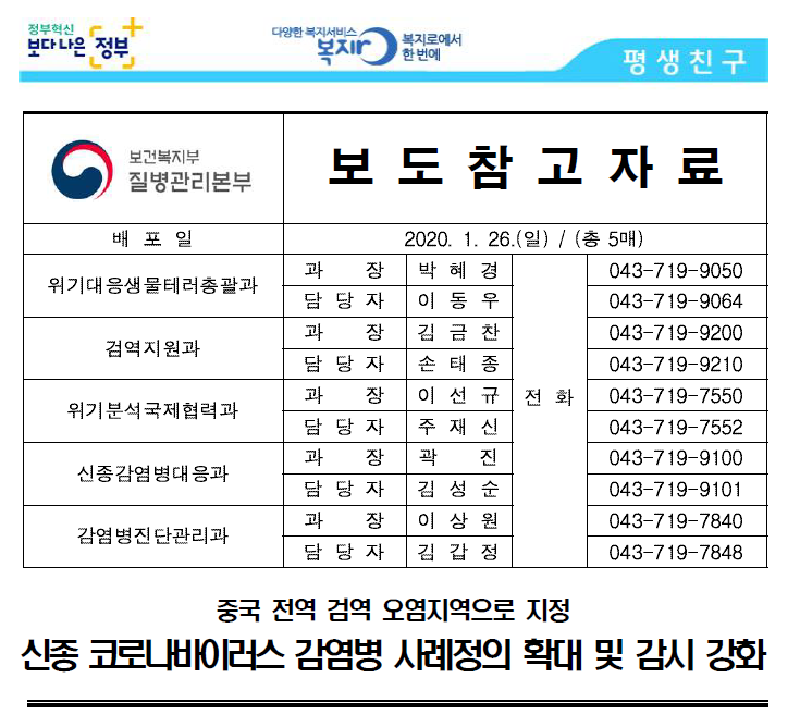중국 전역 검역 오염지역으로 지정 신종 코로나바이러스 감염병 사례정의 확대 및...