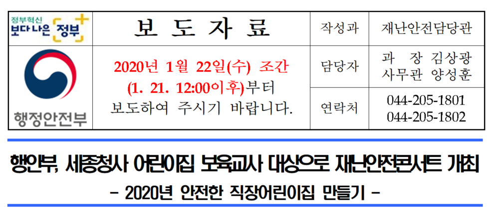 행안부, 세종청사 어린이집 보육교사 대상으로 재난안전콘서트 개최