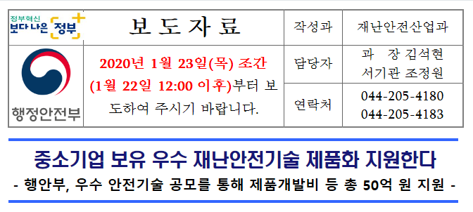 중소기업 보유 우수 재난안전기술 제품화 지원한다