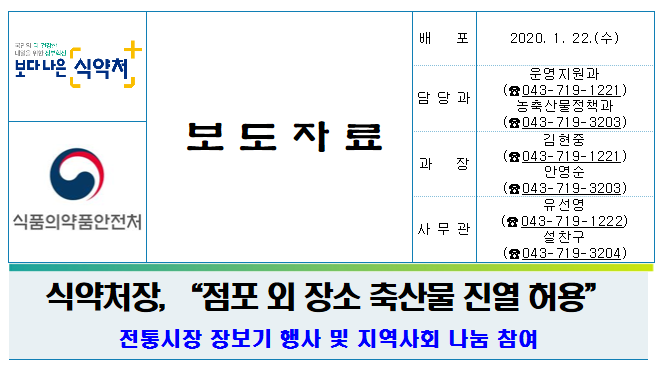 식약처장, “점포 외 장소 축산물 진열 허용”