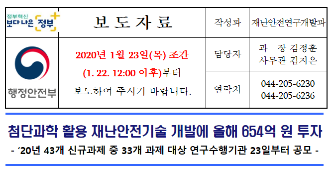 첨단과학 활용 재난안전기술 개발에 올해 654억 원 투자