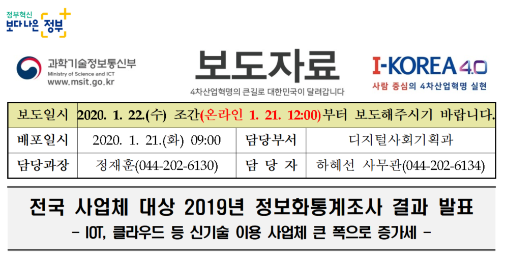 전국 사업체 대상 2019년 정보화통계조사 결과 발표