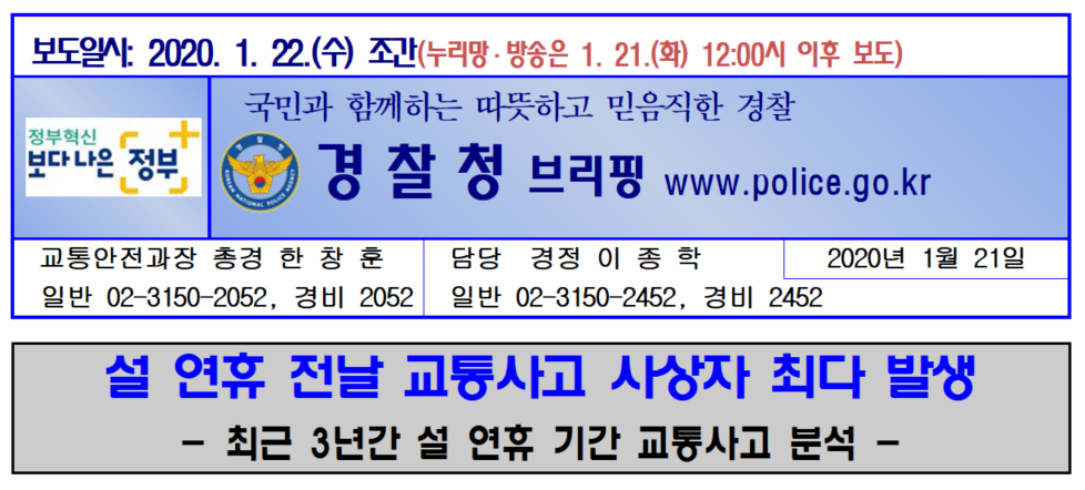설 연휴 전날 교통사고 사상자 최다 발생