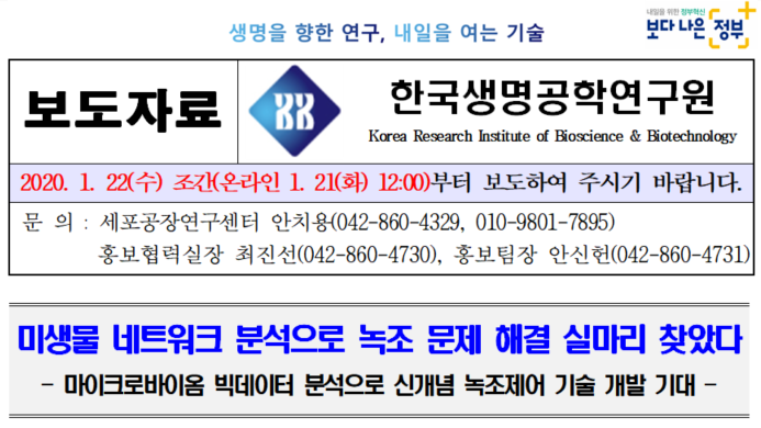 미생물 네트워크 분석으로 녹조 문제 해결 실마리 찾았다