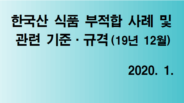 수출국 규제 정보 - 한국산식품 부적합 사례('19년 12월)
