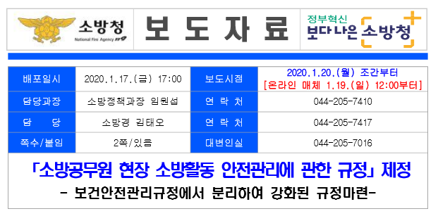 (보도자료) 소방공무원 현장 소방활동 안전관리에 관한 규정 제정