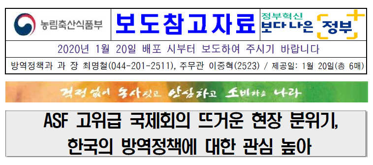 ASF 고위급 국제회의 뜨거운 현장 분위기, 한국의 방역정책에 대한 관심 높아