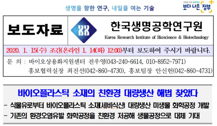 바이오플라스틱 소재의 친환경 대량생산 해법 찾았다
