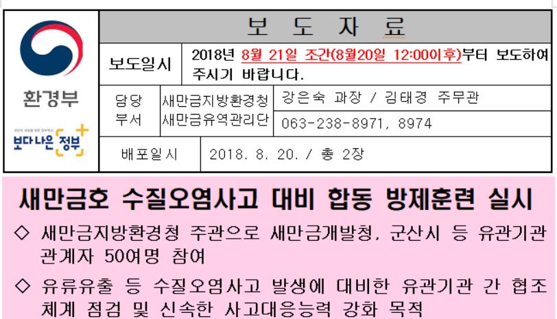 [보도자료]새만금호 수질오염사고 대비 방제훈련 실시