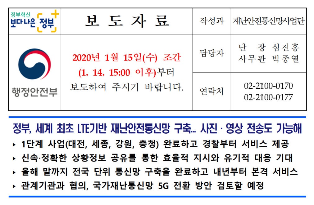 정부, 세계 최초 LTE기반 재난안전통신망 구축... 사진·영상 전송도 가능해