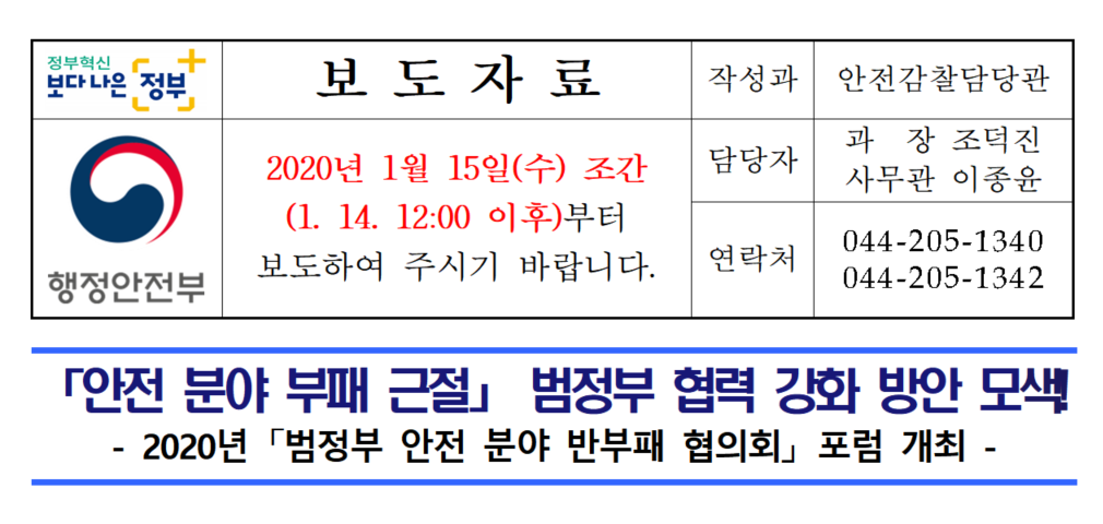 「안전 분야 부패 근절」 범정부 협력 강화 방안 모색!