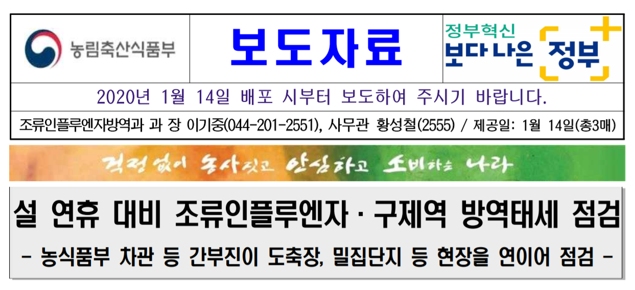 설 연휴 대비 조류인플루엔자·구제역 방역태세 점검