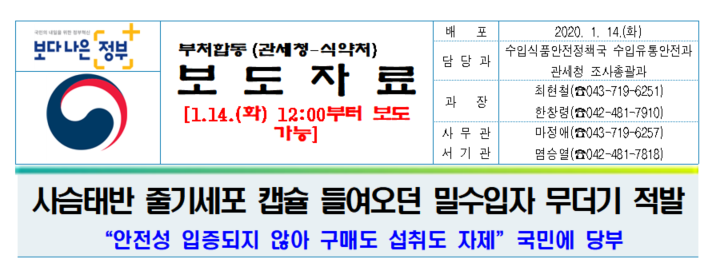 [부처합동] 사슴태반 줄기세포 캡슐 들여오던 밀수입자 무더기 적발