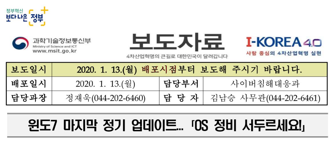 윈도7 마지막 정기 업데이트... 「OS 정비 서두르세요!」