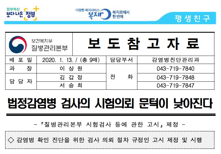 법정감염병 검사의 시험의뢰 문턱이 낮아진다