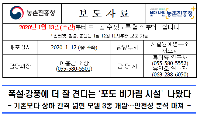 폭설·강풍에 더 잘 견디는 '포도 비가림 시설' 나왔다