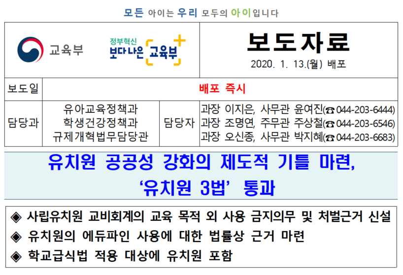 유치원 공공성 강화의 제도적 기틀 마련, 유치원 3법 통과
