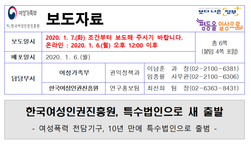 한국여성인권진흥원, 특수법인으로 새 출발