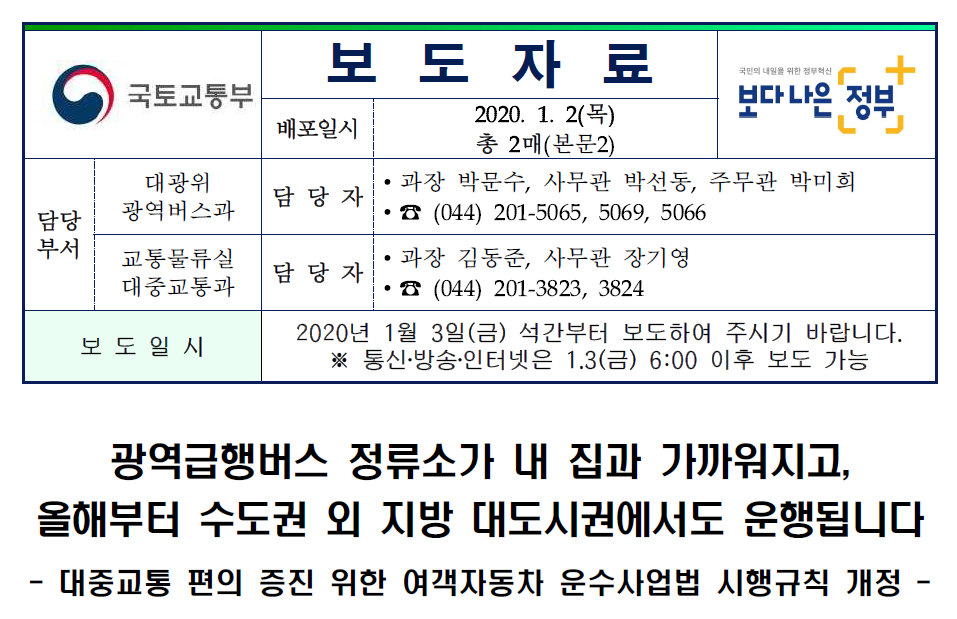 광역급행버스 정류소가 내 집과 가까워지고, 올해부터 수도권 외 지방 대도시권에...