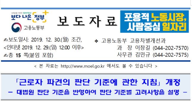 "근로자 파견의 판단 기준에 관한 지침" 개정