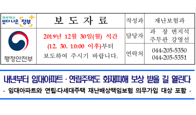내년부터 임대아파트·연립주택도 화재피해 보상 받을 길 열린다