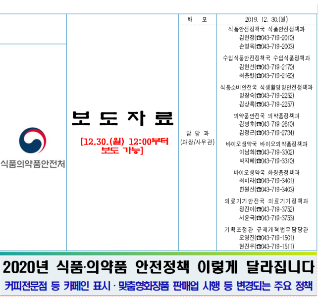 2020년 식품.의약품 안전정책 이렇게 달라집니다