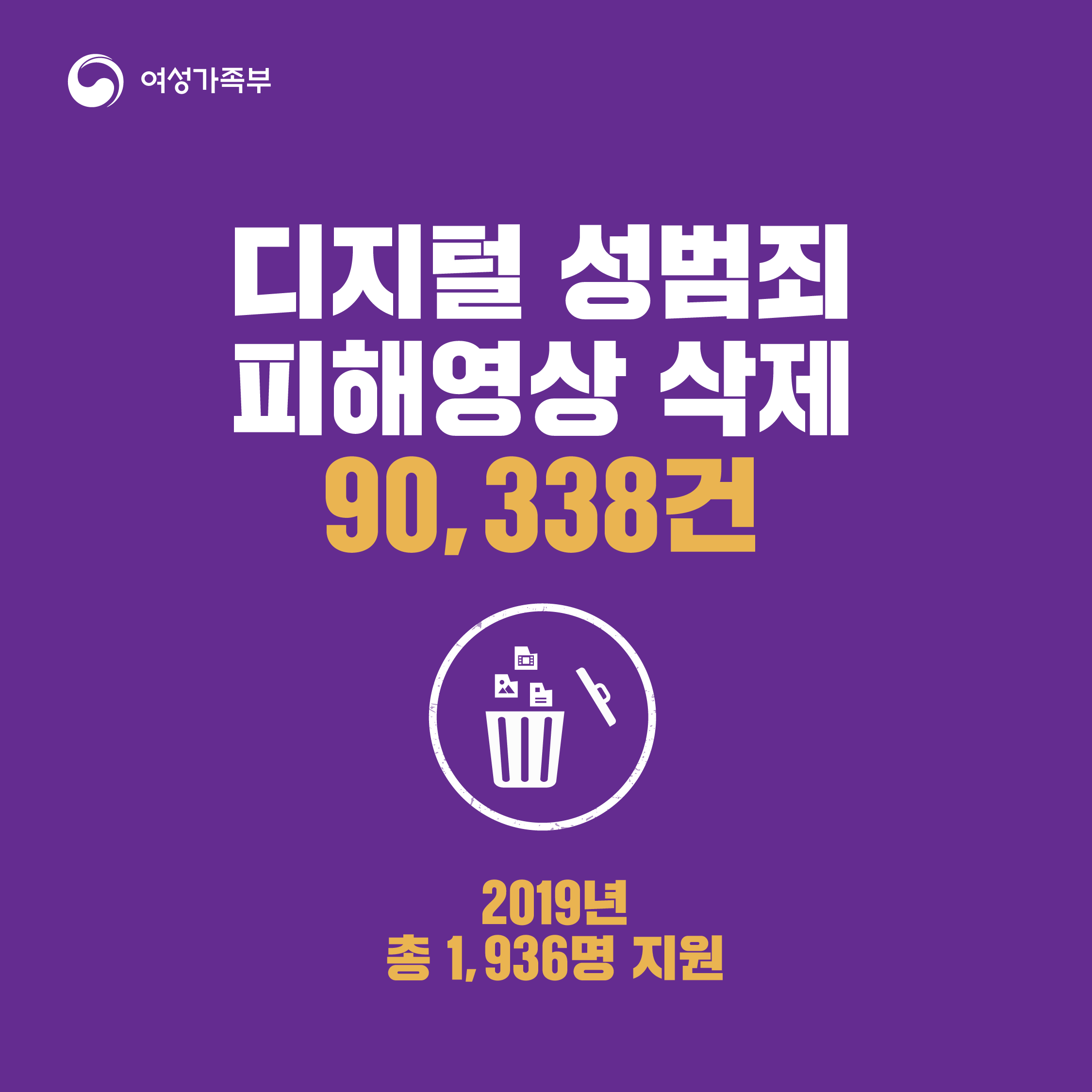 디지털 성범죄 피해영상 삭제 90,338건 2019년 총 1,936명 지원
