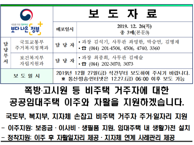 쪽방·고시원 등 비주택 거주자에 대한 공공임대주택 이주와 자활을 지원하겠습니다.