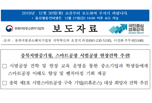 충북지방중기청, 스마트공장 시범공장 현장견학 추진!
