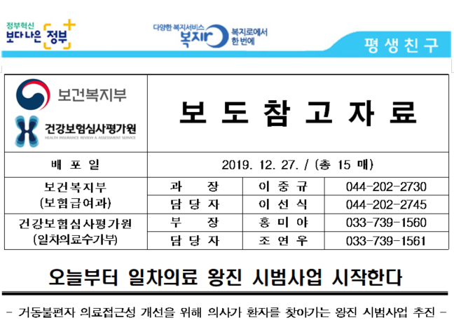 오늘부터 일차의료 왕진 시범사업 시작한다