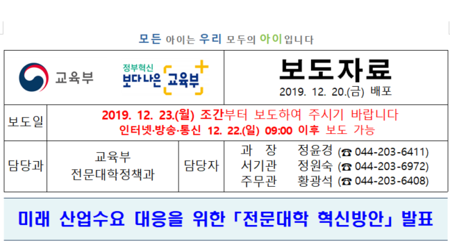 미래 산업수요 대응을 위한「전문대학 혁신방안」발표