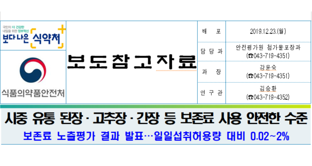 [보도참고] 시중 유통 된장.고추장.간장 등 보존료 사용 안전한 수준