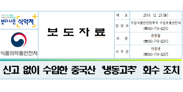신고 없이 수입한 중국산 '냉동고추' 회수 조치