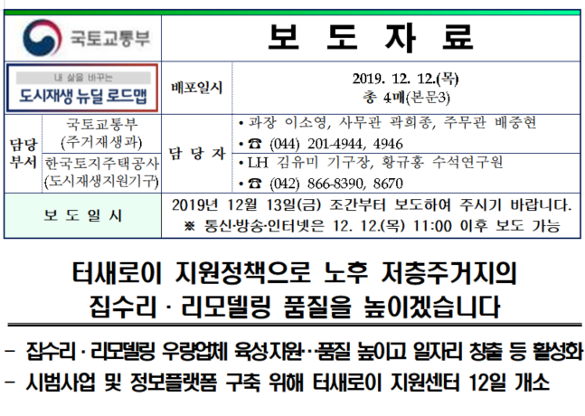 터새로이 지원정책으로 노후 저층주거지의 집수리·리모델링 품질을 높이겠습니다