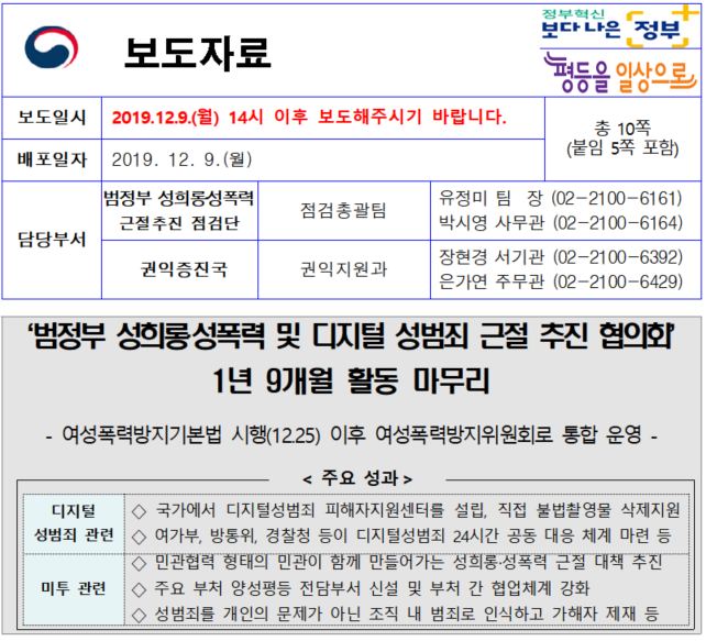 '범정부 성희롱·성폭력 및 디지털 성범죄 근절 추진 협의회' 1년 9개월 활동...