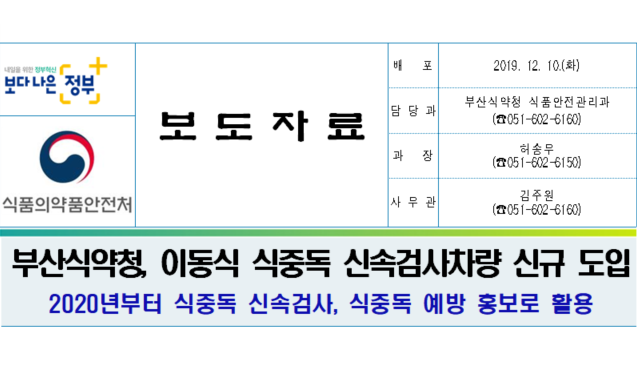 [보도자료]부산식약청, 이동식 식중독 신속검사차량 신규 도입