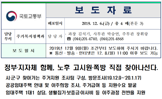정부·지자체 함께, 노후 고시원·쪽방 직접 찾아나선다.